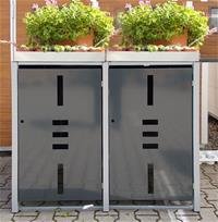 macht die Müllbox zu einem echtem Blickfang. Die Pflanzwanne ist aus verzinktem Blech und hat an den Seiten Löcher, damit das Wasser ablaufen kann. So stehen Ihre Pflanzen nicht in der Staunässe. In die Pflanzwanne passen gut 80 Liter Blumenerde.