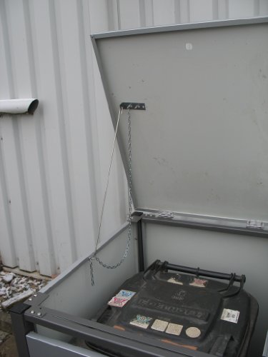 Mittels einer Kette, die am Deckel der Mülltonnenbox und dem Mülltonnendeckel verbunden ist, öffnen sich beide Deckel in einem Handgriff. So müssen Sie beim Müll entleeren nicht beide Deckel separat öffnen.