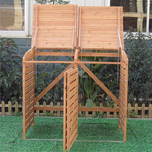 Diese Mülltonnenverkleidung aus Holz bietet Platz für 2 Tonnen bis 240 Liter.